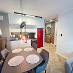 Apartament Brzezno Beach ferielejlighed ligger i Brzezno område i Gdańsk, 15 km fra Gdansk Lech Walesa lufthavn. Der er et køleskab, køkkenudstyr og glas i et tekøkken .